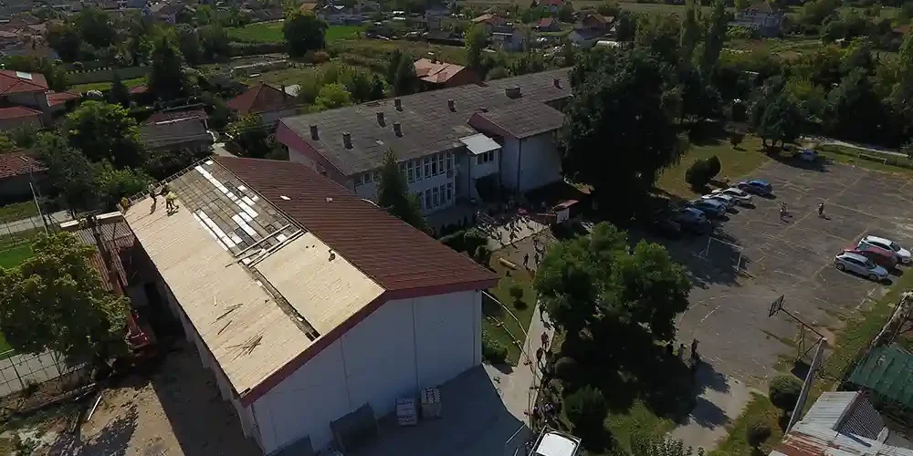Во рамки на проектот предвидена е целосна замена на постоечката кровна површина на централното училиште, ќе се изврши отстранување на старите салонитни табли кои содржат азбестни компоненти, отсранување на хоризонтални и вертикални олуци, поставување на кровен покривач од пластифициран валовит лим. Воедно ќе се изврши и набавка и поставување на хоризонтални и вертикални олуци, опшивки кај вентилациони канали и поставување на снегобрани.