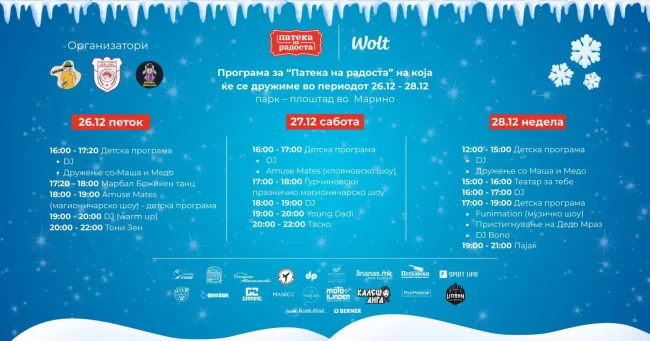 Плоштадот во населеното место Марино за време на викендот беше центар на празнична магија, радост и заедништво, каде голем број граѓани од сите возрасти уживаа во новогодишната магија на „Патека на радоста“, во организација на општествено одговорни компании и под покровителство на Општина Илинден.